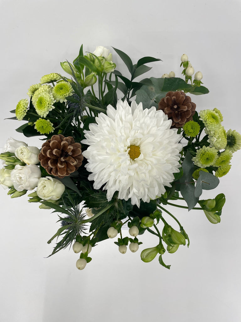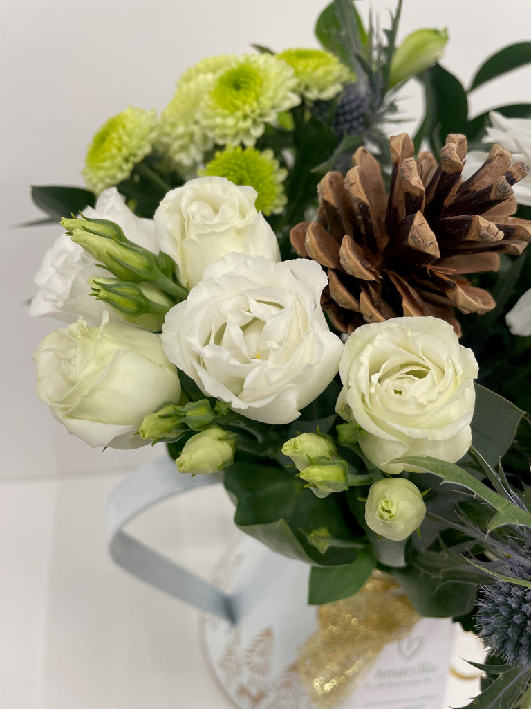 Beautiful seasonal flowers delivered in a Christmas style metal jug, which will make a thoughtful gift or table centre for that special someone, friend or just a treat for you!